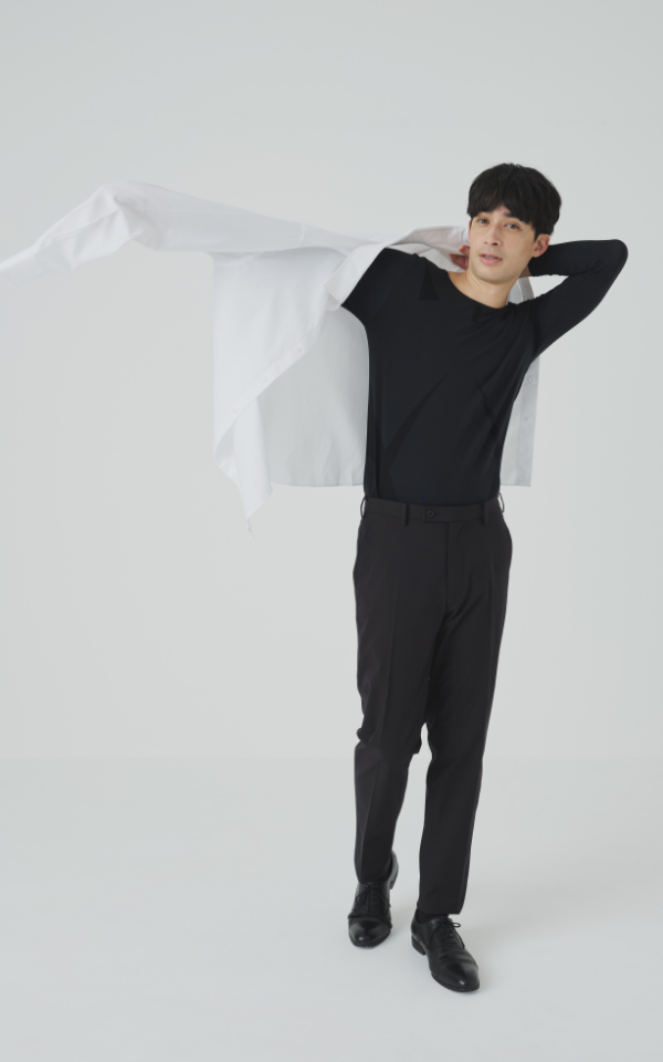 「デリットテック」の特長でもある、生地に凹凸のあるオリジナルデザインとフィット感ある着心地で仕上げました。